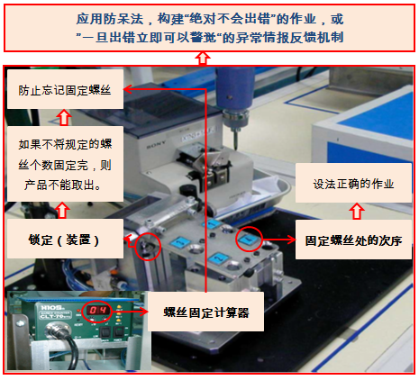 图3.8是生产过程中某产品固定螺丝作业运用防呆法的实例。