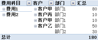 分摊完成后,向各维度组合方向汇总,才是各维度组合的成本。例如,"客户+部门"维度的组合成本为180元,如图表4-5所示。
