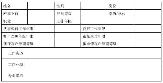 附则1:客户经理资格评审申请表,如表6-11所示。