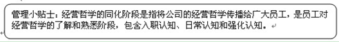 经营哲学的落地实施系统包括同化、内化和固化三个阶段: