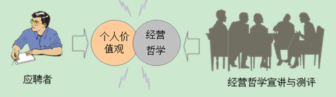 首先,是应聘者对公司的经营哲学倡导的核心价值观的选择——公司在招聘时(各种招聘会的宣讲、宣传材料、面试过程)宣讲自己公司的经营哲学,应聘者可以分析自己是否能够达到公司要求。