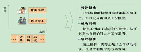 第三,绩效标准,通过榜样,实际上是建立了绩效标准,给员工明确了方向。