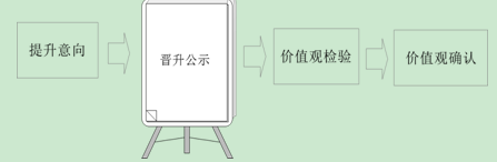 晋升公示是指公司对拟提升的员工意向在晋升前进行公示。晋升公示是一个价值观检验过程,符合公司价值观和干部行为规范要求的员工则可得到提升,否则不会得到提升,无论干部是否最终得到晋升,晋升公示的过程都是对公司文化要求的确认。如图4-18所示。