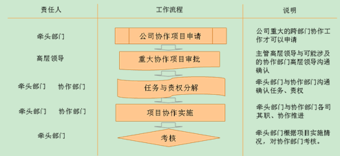 自动服从协作机制指在公司级协作项目中,成立一个跨部门的虚拟项目部,牵头部门作为项目负责部门,与各部门分解任务和责权,共同完成项目的推动工作。实施方式为: