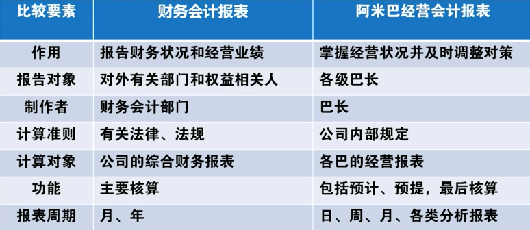 财务会计报表需要符合相关的法律法规的,而阿米巴的报表只要符合内部规定即可。