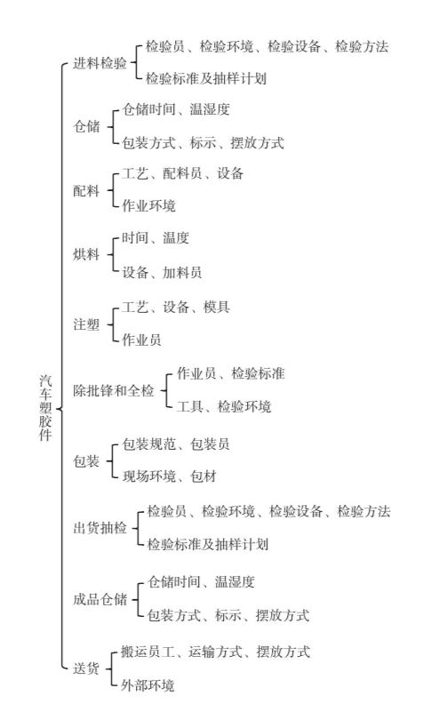 结构树是把公司产品进行结构分析,识别各工序的影响品质要素。如图2-2所示。