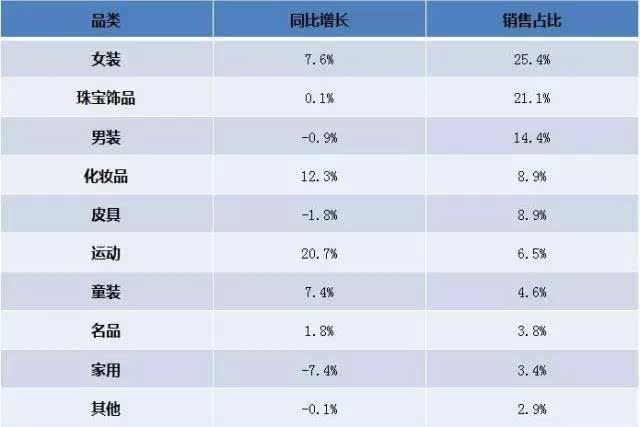 表5-2 2015年银泰商业销售品类增长状况