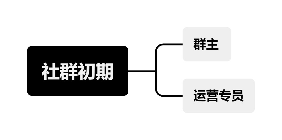 在社群运营发展初期,社群规模相对较小时,整个社群运营从用户引流,到用户激活,再到最后的成交转化,往往只有一名社群运营专员来负责。这时候整个社群的核心人物只有两个:群主和运营专员。前者主要负责用户引流和内容输出,后者主要是维护社群的日常工作,包括用户信息收集、简单的社群活动策划、用户交流、活跃气氛等。相当于同时兼职客服、活动策划、用户沟通等工作。如图12-3所示。