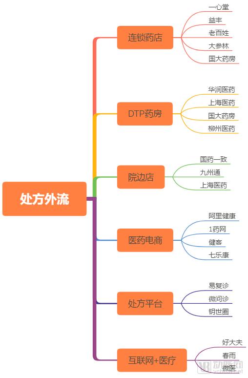 处方外流将带来药品流通渠道结构调整,对于市场而言,既是存量调整,也是新的增长点。故此,零售连锁药店、DTP药房、院边店、医药电商、互联网+医疗企业等瞄准这一机会,积极进行布局。