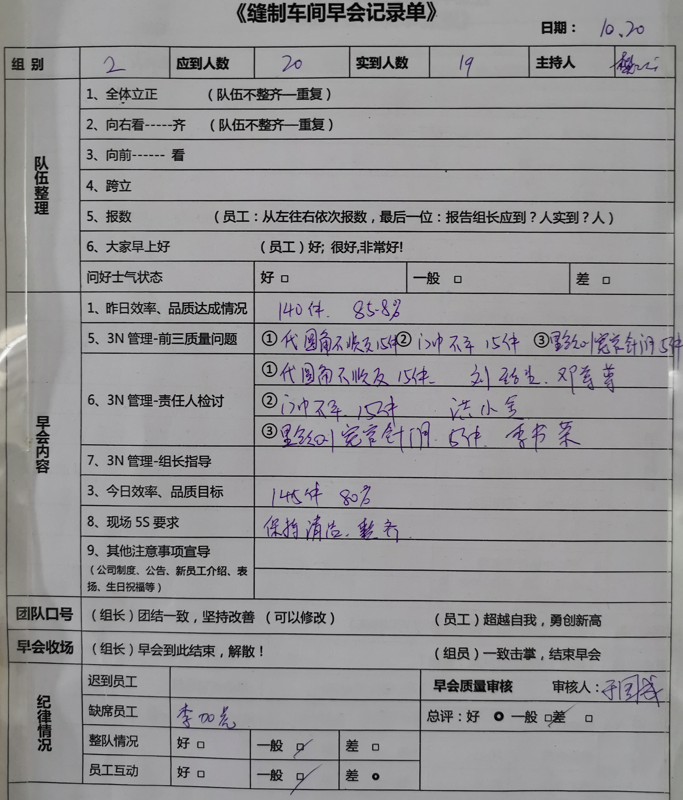 在召开早会的过程中,经常有班组长忘记召开早会的内容,下面的这个案例是笔者在温州某公司辅导时的真实情况。