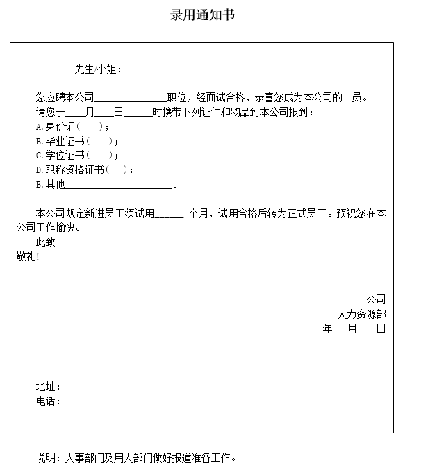 表5-2-1 录用通知书