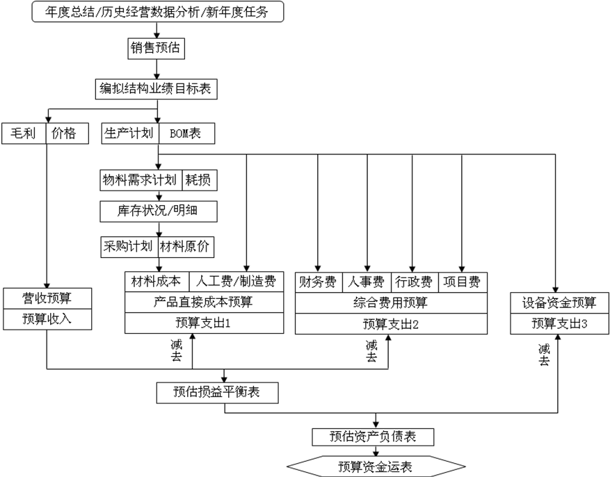 第一步,预算于各职能内的确认。由营收预算、产品直接成本预算、综合费用预算及设备资金支出预算的需求部门负责人对所提出的预算项目、预算金额进行确认。