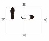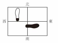 2.双手不动,右脚跟放于原来尚未旋转前的位置,脚跟点地,脚尖与身体一样朝向东方。