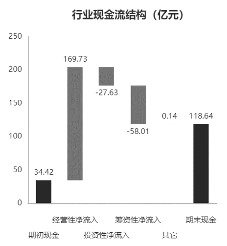 具体来看,由于一般公司以五年为周期来做战略规划和投资布局,故我们以五年为一个周期来分析上市公司的现金流累计值。具体包括六个指标:期初现金、经营性净流入、投资性净流入、筹资性净流入、其他及期末现金。其中,经营活动的现金流净额体现的是上市公司的造血能力,它应该是一家可持续经营公司的主要资金流入来源,受公司盈利能力、议价能力变动和生产决策及存货管理影响;投资活动的现金流净额体现的是公司的发展扩张,包含理财类投资等,受公司投资决策影响;而筹资活动的现金流净额往往是公司根据现有的经营活动和投资活动的缺口或富余进行融资或债务的偿还和分红,与企业的融资决策和分红决策相关。