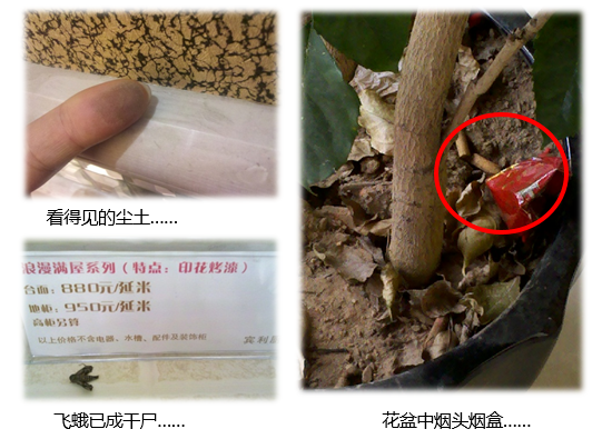 天花板、墙角、灯具目视无灰尘、无蜘蛛网