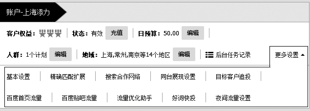 图3-11 搜索推广账户层级的界面和菜单