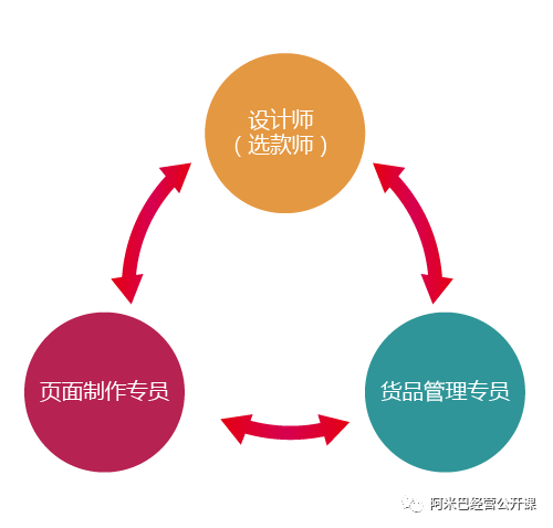 创业阶段韩都衣舍独创“单品全程运营体系”,如图2-9所示,每一款产品,从设计、生产到销售,以“产品小组”为核心,企划、摄影、生产、营销、客服、物流等相关业务环节配合,采用全程数据化、精细化的运营管理系统,“多款少量,以销定产”,最大限度地发挥互联网的优势,建立“款式多,更新快,性价比高”的竞争优势,为此营销组织设计采用一体化的小组模式,小组只有三个岗位,因为在服装行业里,最关键的岗位是设计、生产、营销,是以3~4个人为单位,组成最小的组织。将运营体系放到每一个小组里面,使得小组产出的正是用户需求的服装。