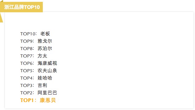 2019浙江品牌TOP10评选结果,本榜单根据网友的真实投票结果进行排名