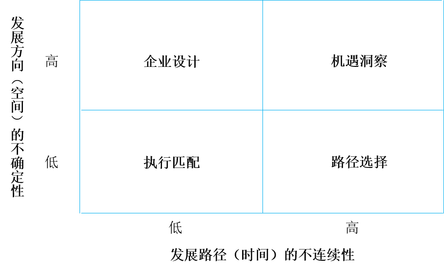 《超越战略》提出了大量具体的工具,操作性很强。例如它为企业进行多维度的战略设计提供了一套系统的方法:从机遇洞察、企业设计、路径选择、执行匹配等角度提供了理论指导,如图5-2所示。