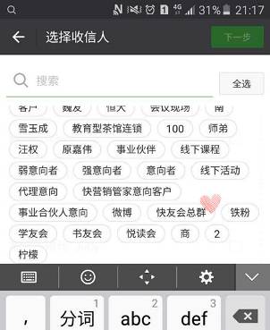 步骤9:选取需要群发的标签类别,例“快友会总群”。