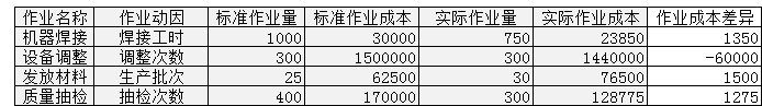 作业成本差异=实际作业成本-实际作业量×标准作业成本分配率