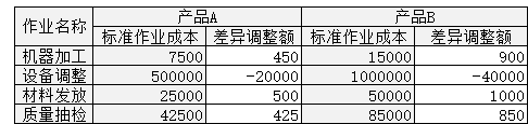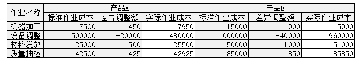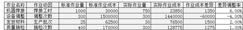 差异调整率=(实际作业成本-实际作业量×标准作业成本分配率)÷(实际作业量×标准作业成本分配率)
