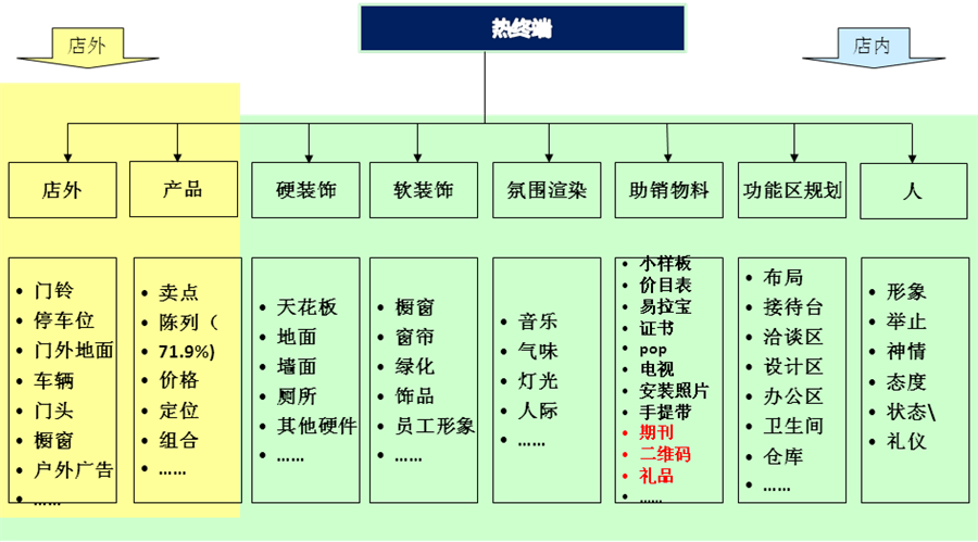 泛家居行业店面的生动化,主要目的包括以下四个方面:一是引起注意,形成视觉关注点;二是传达品牌信息;三是传达产品信息;四是突出促销信息。所以,店面的每个元素,比如店外(门铃、停车位、门头、橱窗等),比如店内的产品、硬装、软装、氛围渲染、助销物料、人货场等,独立来看,都是很重要的,当然,组合起来的表达,则更加重要(如图4-25所示)。