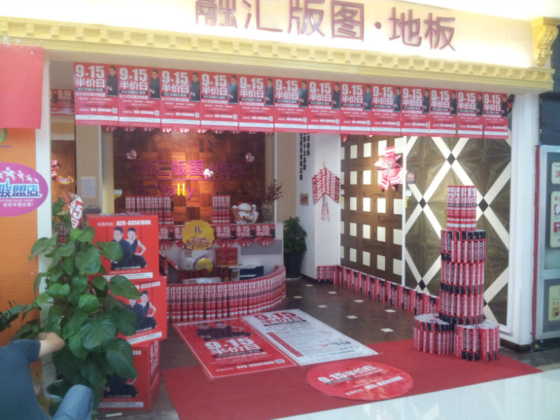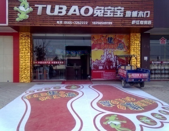 重点是在门头上挂横幅,门面用金布,不干胶或者展板/KT板装饰好。如图4-26、4-27所示。