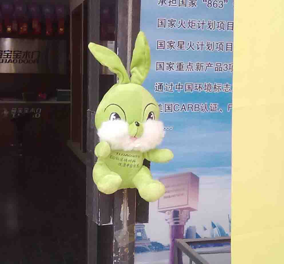 红花虽好,还要绿叶扶持,通过生动化的物料,快速的形成视觉焦点,把促销活动的主推产品呈现给消费者。比如图4-35采用一个拉花,图4-36采用公司的小兔子挂件、特价标签。整体效果一定要显眼,毕竟,现在是注意力经济时代。