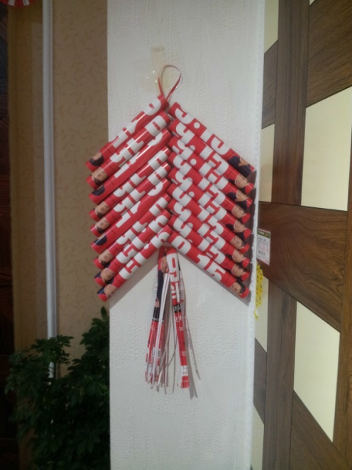 (3)在礼品最高的地方放个大红花或者礼品KT板,以示欢快喜庆。如图4-32所示。