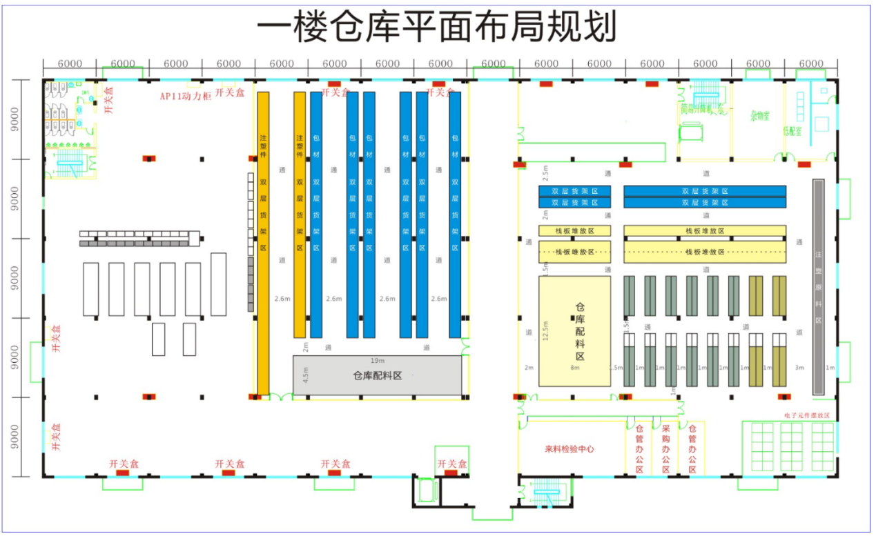 面对这种情况,为了更好地利用空间,对包材区域进行货架设计,使纸箱上货架;对配件货架区域进行重新调整,货架长度、高度全部调整为一种系列规格;为了使物流路线更加畅通,仓库的大门需要重新布置位置,原来是没有备料区的,现在在仓库的门口位置设置备料区,放置1~2天的订单备料物料。