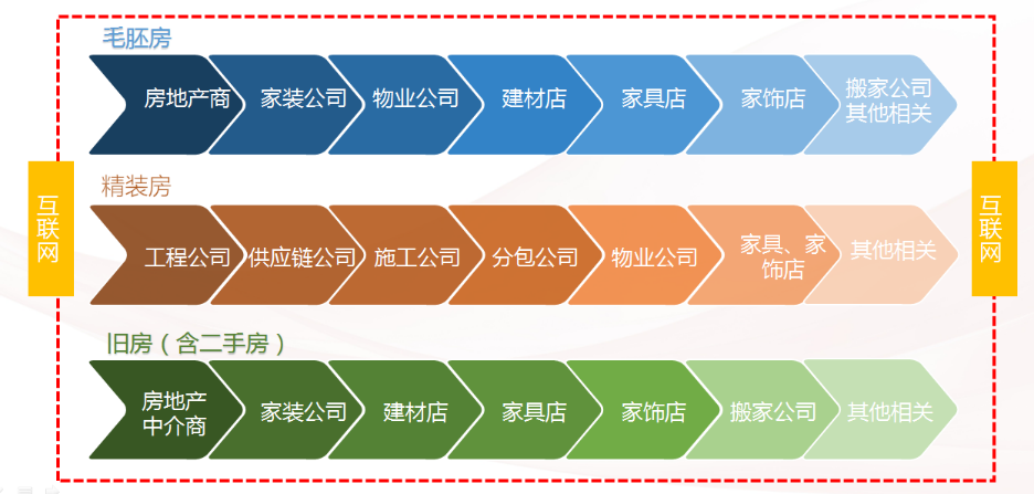 不同类型的房屋,决定全屋定制的角色流程有所不同,现阶段竞争加剧而导致入口前置已是大势所趋!