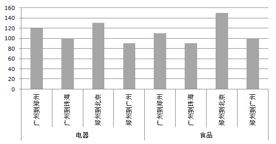 图6-9 各"货物类型+路由"的收入比较柱图