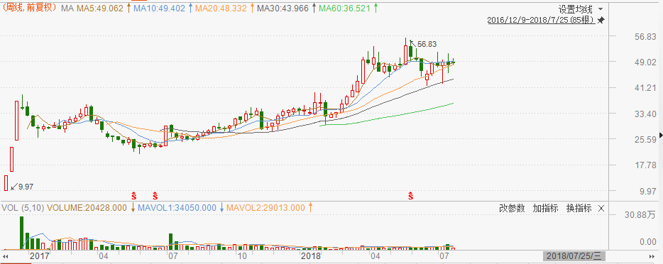 作为次新股,开板后稳步下跌,但是半年报的超预期带动了股价的上涨,未来走势尚待观察。如图4-5所示。