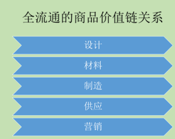 按照现代管理和营销理论,全流通的概念已经深入人心,打破了部门和环节之间的壁垒和隔阂,以商品的价值链将设计、材料、制造、物流、营销串联起来,形成全流通的模式。