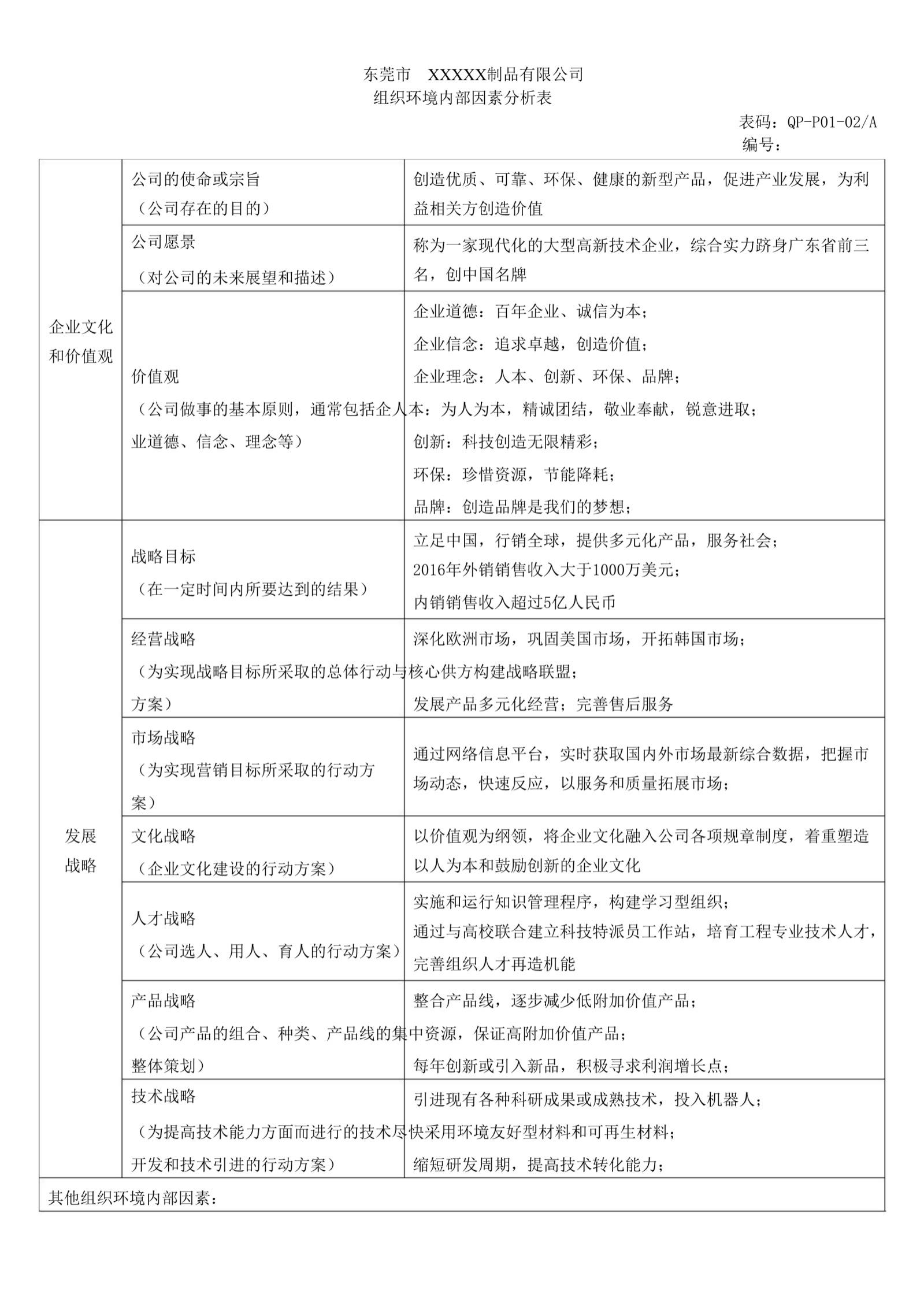 内部环境:组织的价值观、文化、知识和绩效等相关因素。