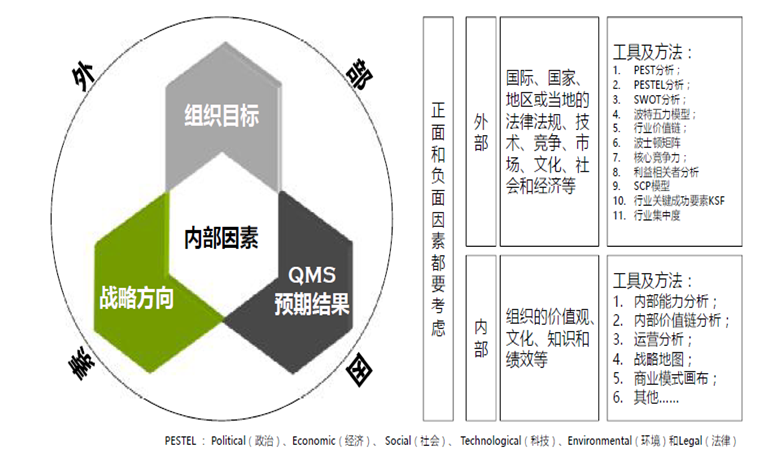 组织应确定与其目标和战略方向相关并影响其实现质量管理体系预期结果的各种外部和内部因素。
