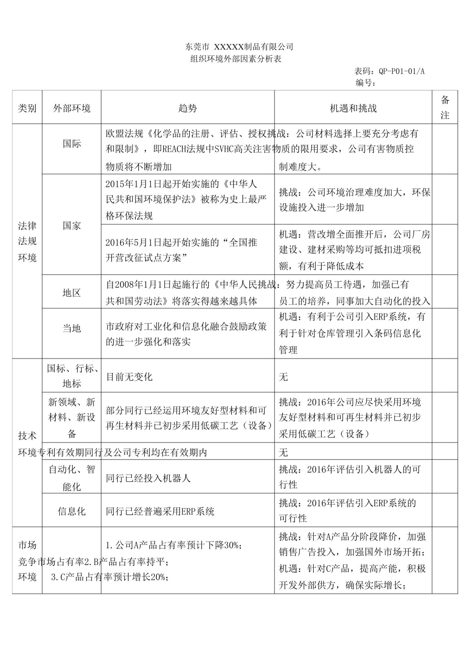 (3)每年管理评审时,要评审一下内外部环境的变化,并更新内外部环境因素识别表。