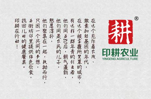 印耕,字里行间就带有一股浓浓的人文气息,符合印耕农业的中高端服务定位,而且与创始人的农业情怀“找回儿时的味道”不谋而合。