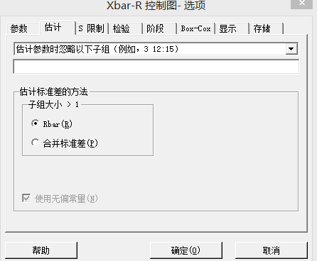 (3)在“Xbar-R选项-估计-子组大小>1”中选择“Rbar”,如图,1-26所示。