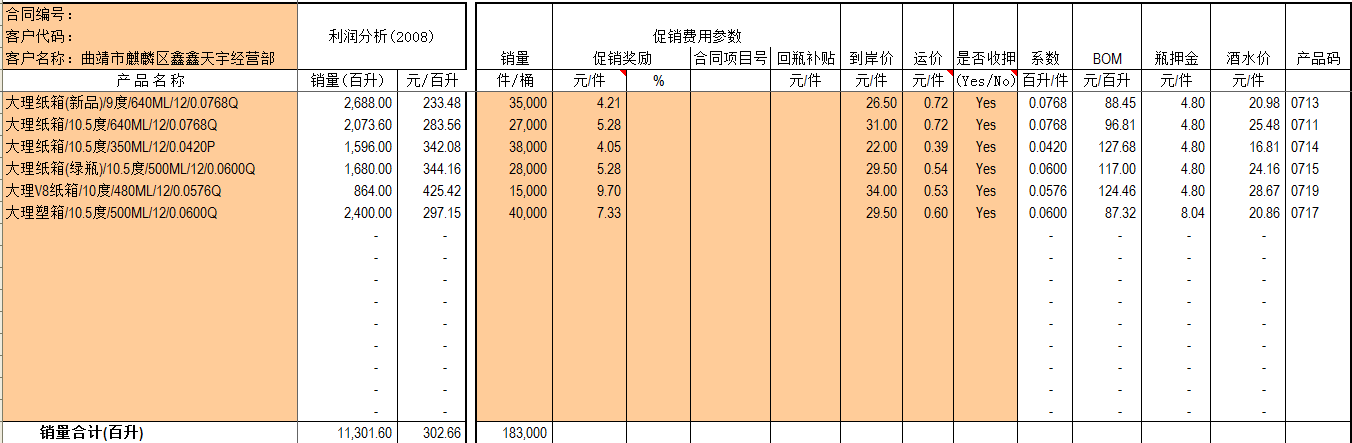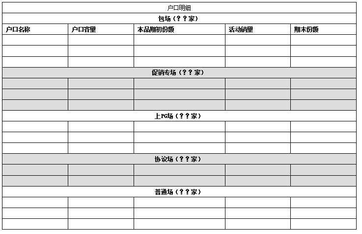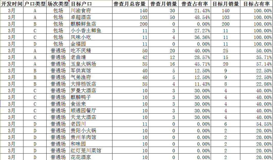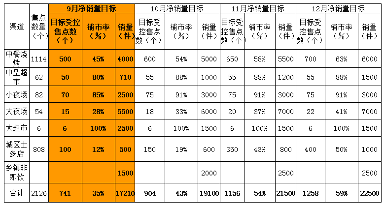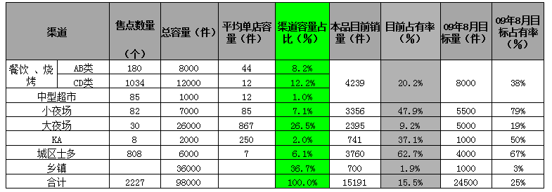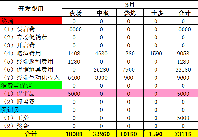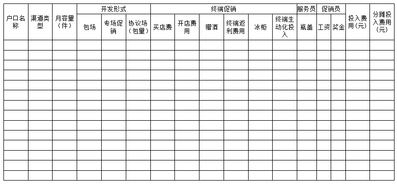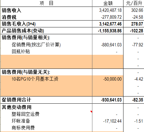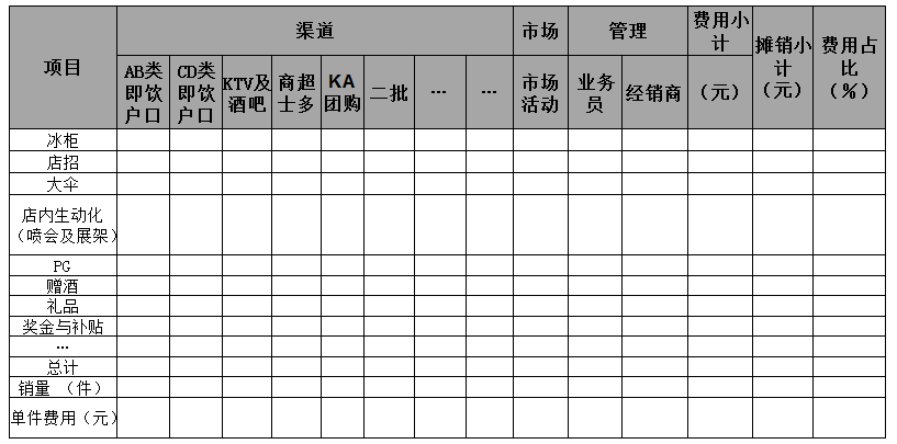 注:此表户口(终端)为开发清单里设定的目标。分摊费用为固定投入如冰柜等按折旧月份计入本月的费用。