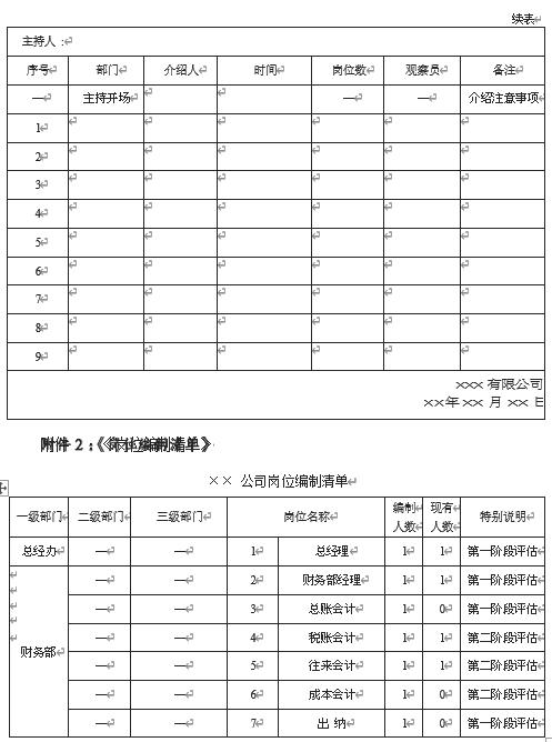 岗位说明书的初稿,建议由填写岗位工作分析调研问卷的员工代表和该岗位的直接上级共同完成,随后统一提交给行政人事部审核,最后由岗位工作分析专项小组审核定稿并试行。