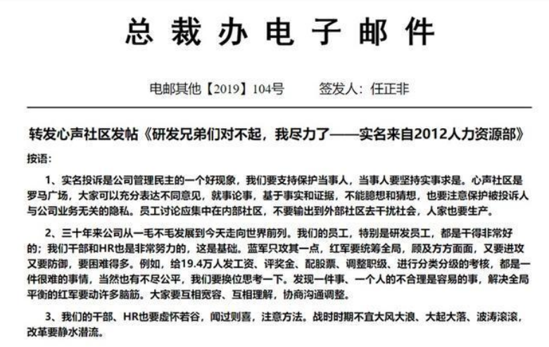 为此,华为的任正非为了平息胡玲事件对华为的影响,特地签发了总裁办电子邮件,如图3-1所示。