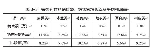 (4 )每类药材的最近缺货情况、仓库储备量(数据略),见表 3-6。