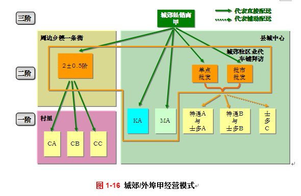 (6)城郊/外埠通路布建图解:城郊/外埠甲经营模式如1-16所示。