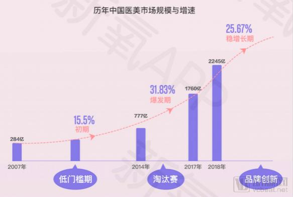 45亿元,同比增速27.57%。过去3年增速,中国医美市场平均年增速达到31.83%,处于爆发期。
