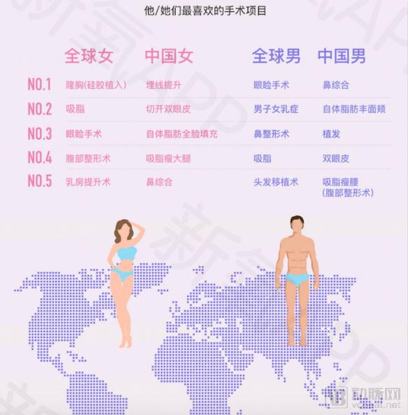 第五,从消费者的项目选择大数据来看,中国与全球医美消费者对美有着共同的标准,那就是皮肤细腻光洁、轮廓凹凸有致、大眼睛双眼皮、丰胸细腰长腿、发际线绵长、毛发充足。