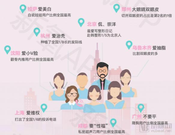 郑州出大眼美女,乌鲁木齐以瘦为美,广州拒绝平胸,沈阳小脸最迷人,拉萨崇尚一白遮三丑。根据新氧大数据,北京用户赴韩整形者最重,占比达到全国的5分之一。沈阳用户“削”脸不含糊,把自己整成小V脸。成都用户最注重“性福”感,私密项目占比全国最高。上海用户打出的投诉电话仍然高居第一位。差不多八分之一的植发订单在杭州消耗掉。
