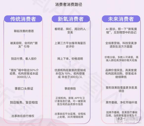 中国医美用户的平均年龄比美国年轻10岁,他们的审美观和消费观不很成熟,因此需要被合理介绍医美知识。比如新氧公号,2017年覆盖1.2亿人次,向潜在消费者传递的价值观是:理性整形、安全变美、内外兼修。