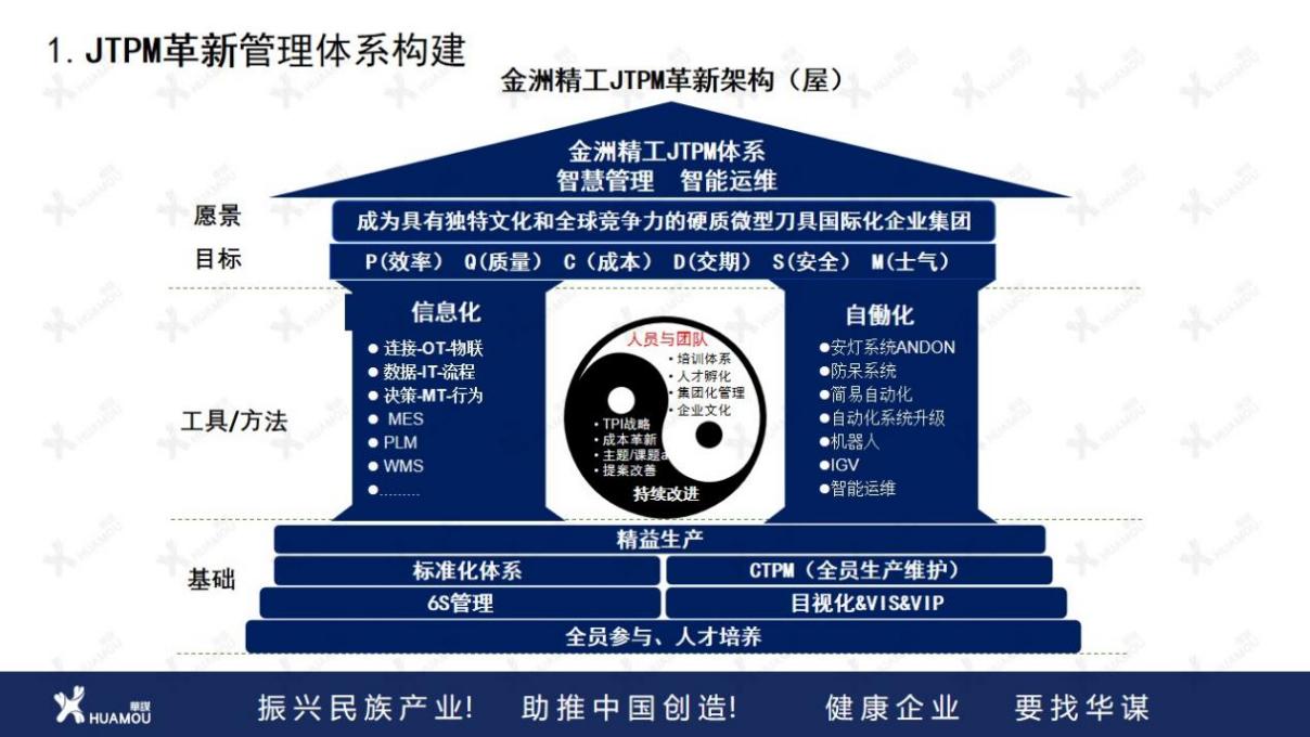 目的:形成一套适合金洲精工实际的精益管理运作模式,通过模式中的逻辑化精益模块分项实施,打造出专业的金洲精工精益管理团队,持续提升企业竞争力。